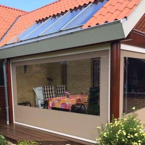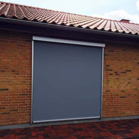 Vi tilbyder udvendige rullegardiner i mange farver, flere typer lærreder og store bredder på op til 3 1/2 meter. De er særdeles vindstabile og kan klare op til 18 s/m, fordi de er styret i kanaler/sluser.